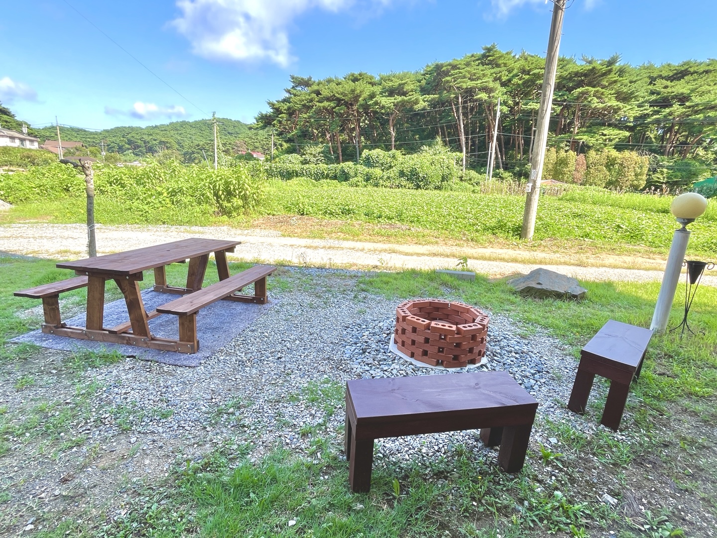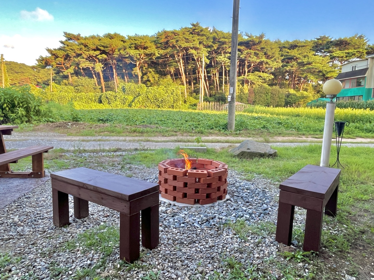테라스5 객실의 바로 앞에서 BBQ와 불멍 화로대 이용이 가능합니다.(유료). 공간이 넓고 아름다운 경치를 감상하시며 여유로운 시간을 보내실 수 있습니다.